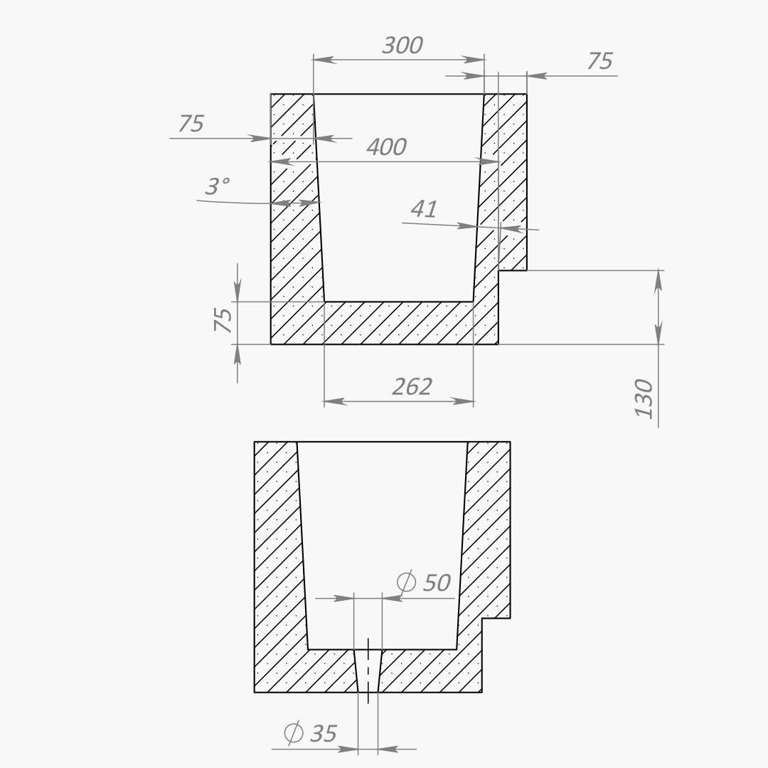 Celem było wykonanie prostokątnej formy na doniczkę z rowkiem umożliwiającym oświetlenie od spodu.